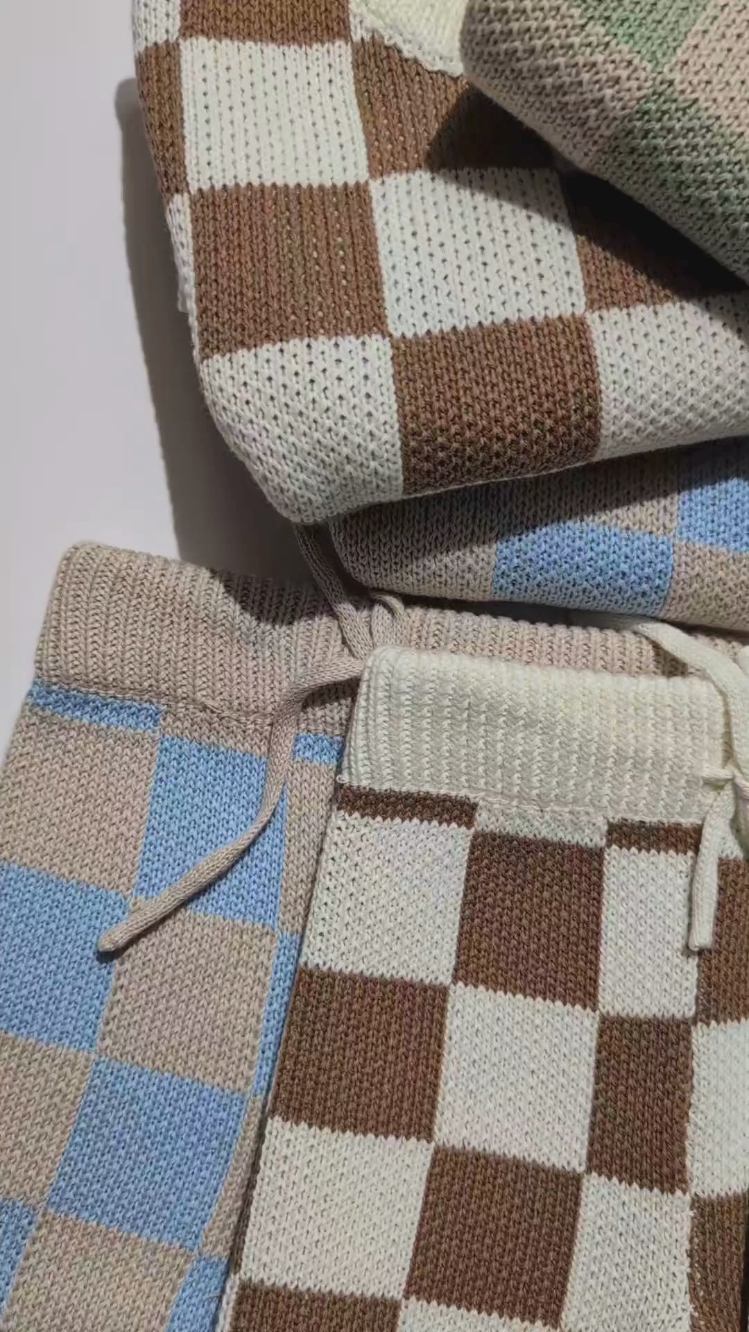 Our Check Set — Mocha is crafted from 100% cotton knit in a warm mocha-brown checkerboard design, blending natural comfort with playful texture.